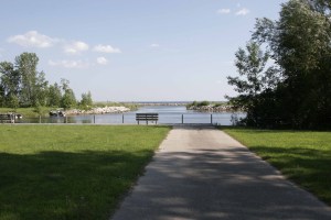 This was as close as we got – a beautifully manicured campsite on the edge of the lake, with a harbour for the small boats. You can just glimpse the real lake (actually Green Bay) beyond.