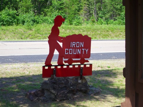 I said yesterday that we were heading into historic iron mining country. Some of the mines still exist, but mostly it’s just history. The town names emphasise the heritage – Iron River, Iron Mountain, Ironwood – and there are little museums along the way: