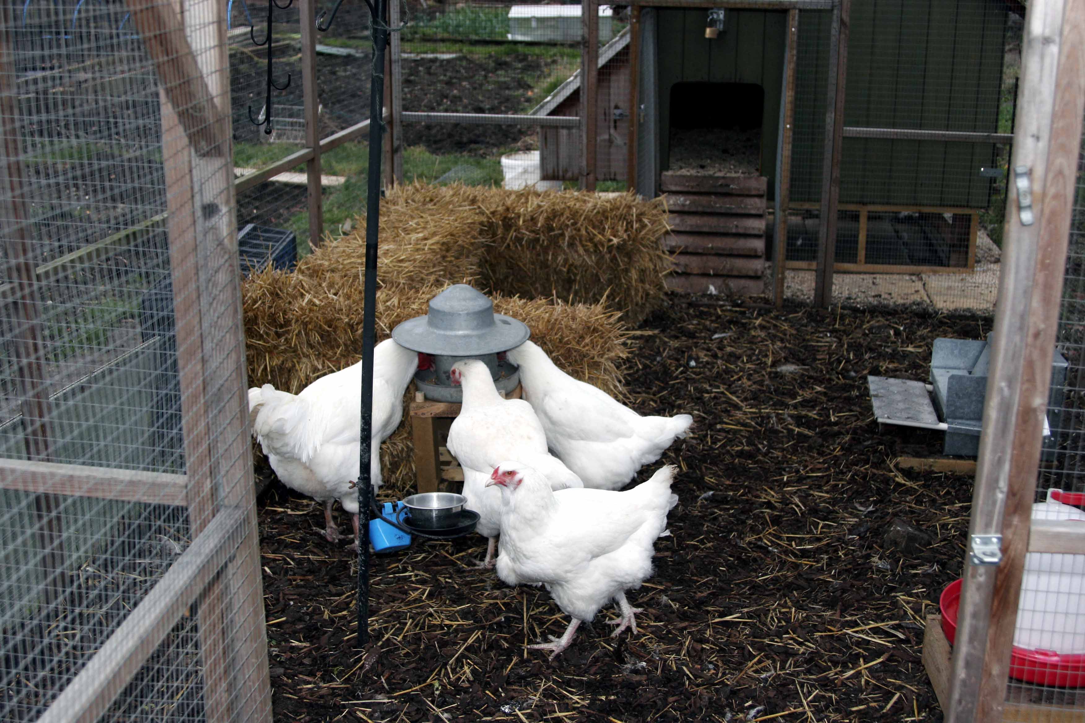 I’ll finish with some gratuitous chicken pix. Here are the Ixworths clustered round a feeder into which I’ve just put a scoop of mixed corn as a bedtime treat: the chicken equivalent of a nice mug of Horlicks.