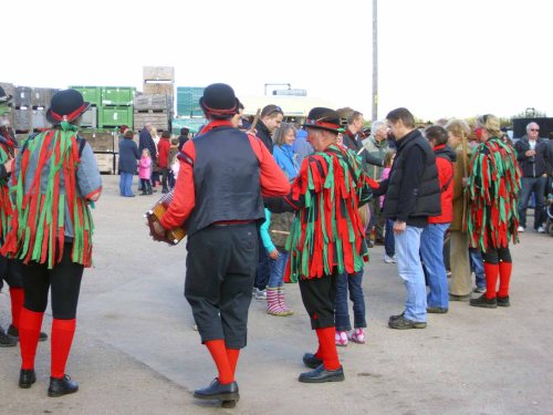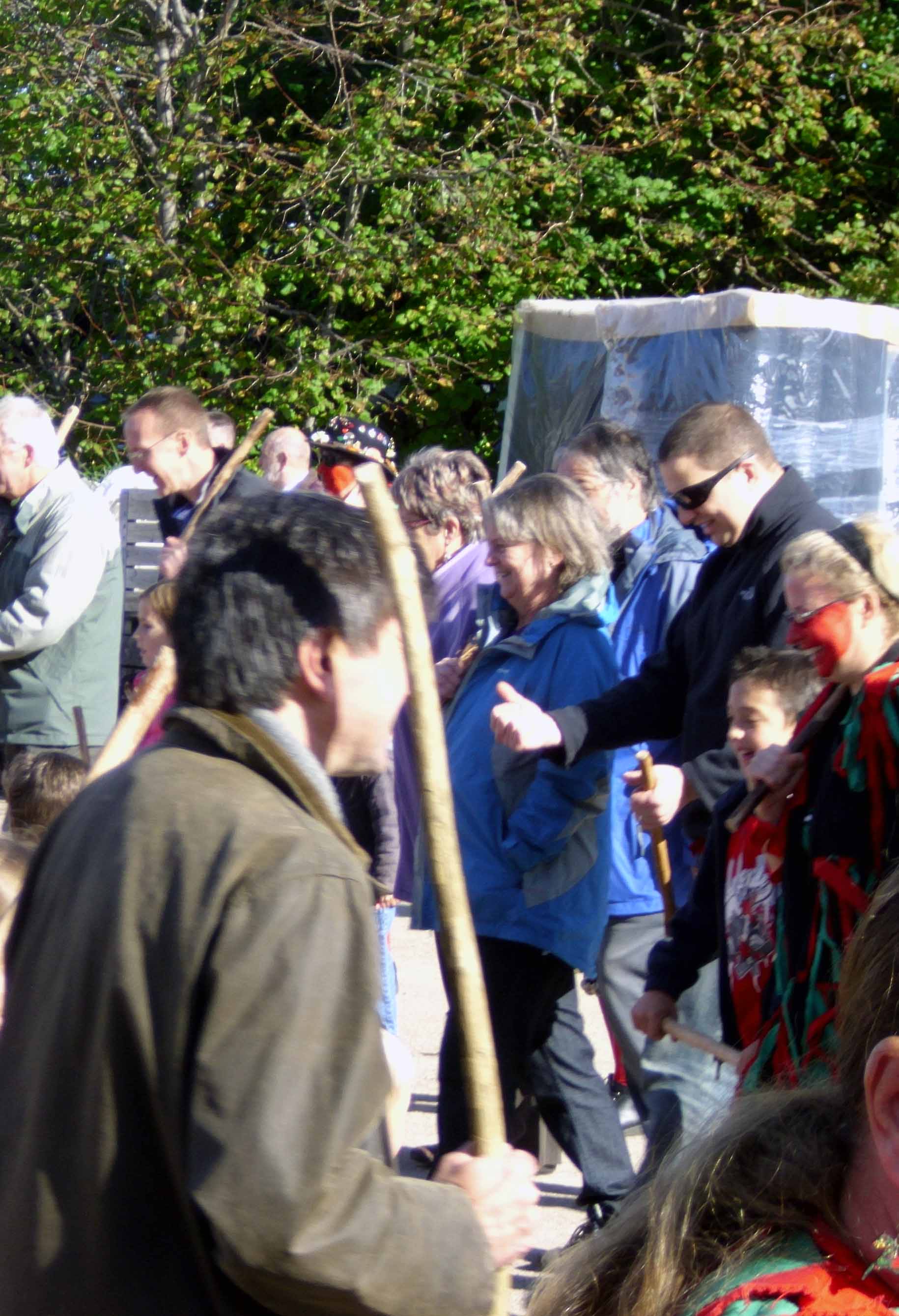 One of the annual attractions is the Morris Dancing. They’re always full of enthusiasm, and this year they encouraged members of the audience to join in. Jean used to be a member of a North West Morris team, so she was “volunteered”. She’s in the centre of the pictures in a light blue coat.