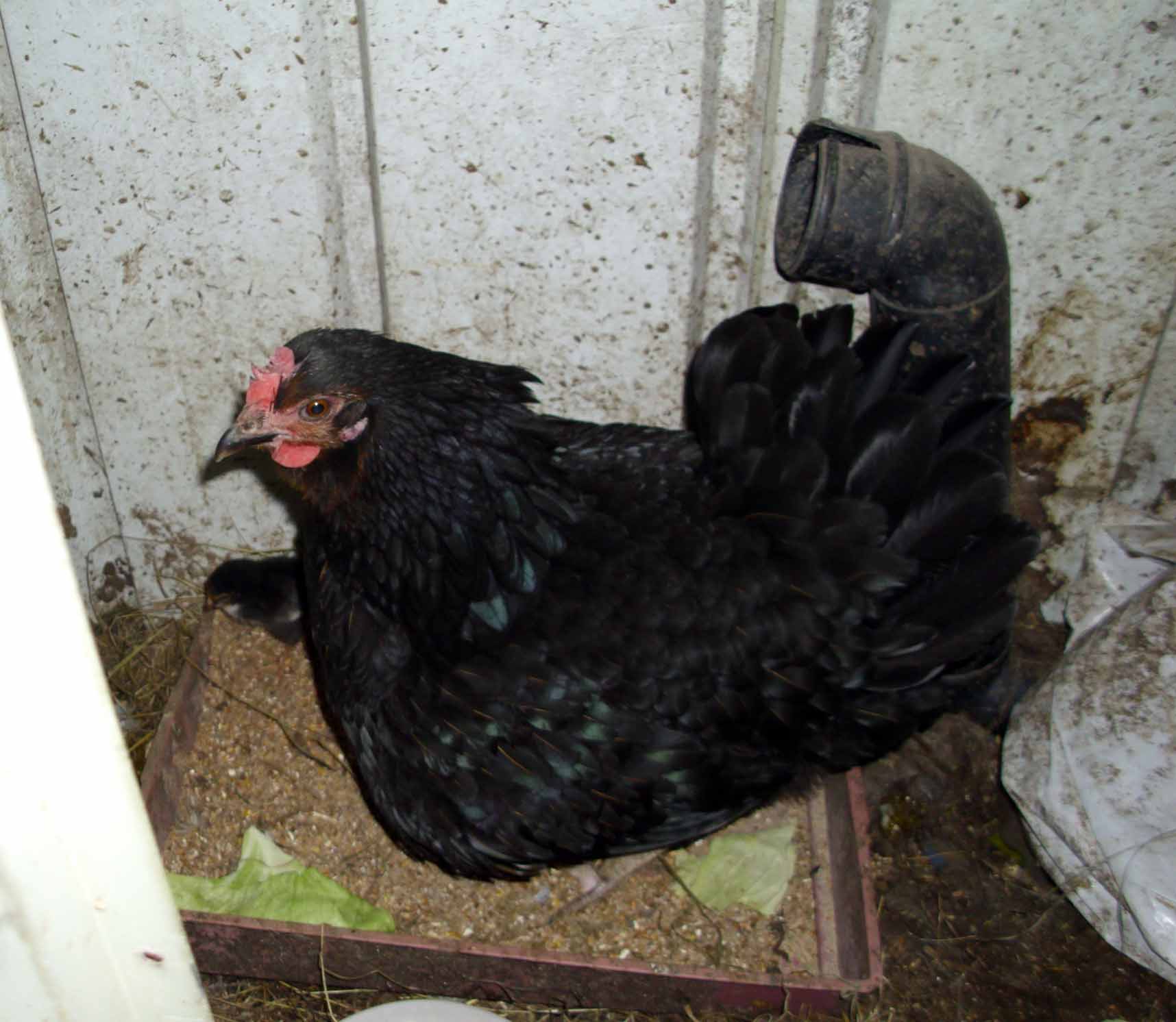 We’re looking after a friend’s hens again this week. When he went away, he left two broodies sitting in nestboxes, so we’ve been keeping a close eye. One abandoned her eggs without a single one hatching. She was being pestered by other hens getting in with her and laying further eggs, which we think might be the cause. Or it might be the recent bitterly cold nights. The other hen was a little more successful:
