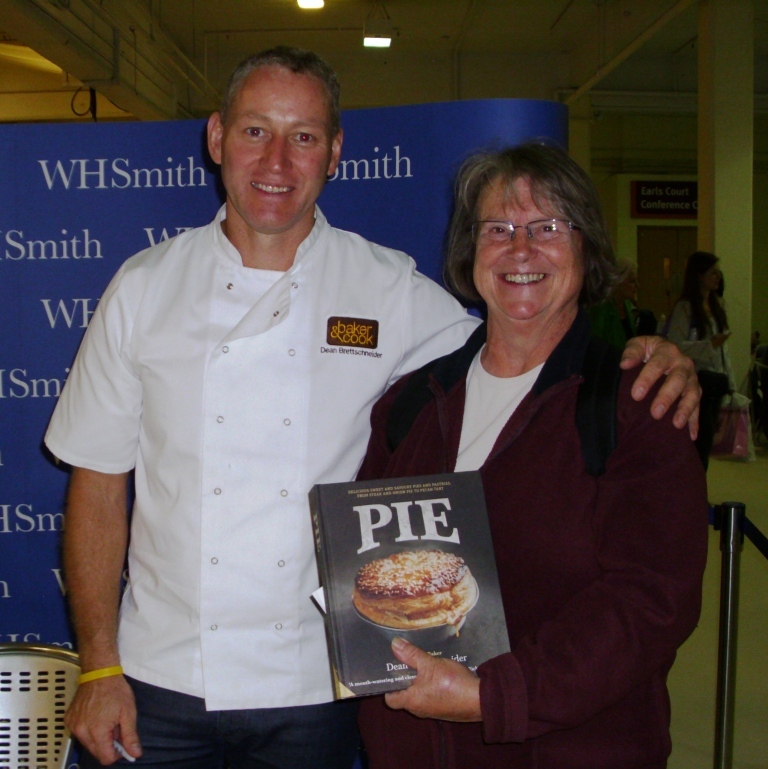 Here are just a few, but we spotted all but four of the thirteen. I’m sure that they were there too, somewhere in the throng. They were a friendly bunch, in spite of it being the third day of the show, and were still willing to pose for photos. Here’s Jean with contestant Glenn, at the Bakery Bits stand. Bakery Bits has long been my favourite website for buying breadmaking accessories, and the Bake Off bakers obviously liked it too.