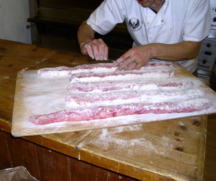 Earlier, Aidan had shown us how to prove baguettes on a floured cloth “couche”.