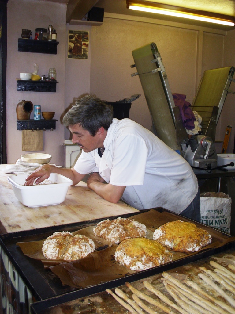 A few more minutes rest were needed before the round loaves went into the oven, so we practised our dough slashing skills on the baguettes.