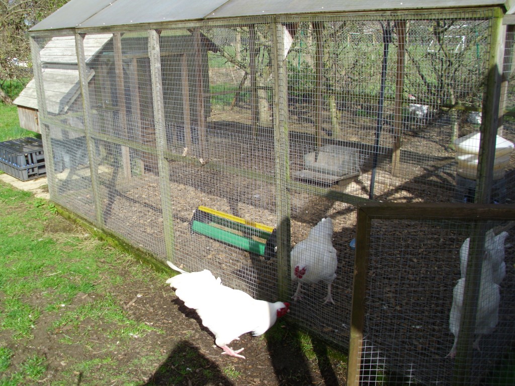 Meanwhile, back at Plot 5, the Year 1 dominant cockerel is challenging the Year 2 cock. Luckily there’s a double thickness of weldmesh between them!