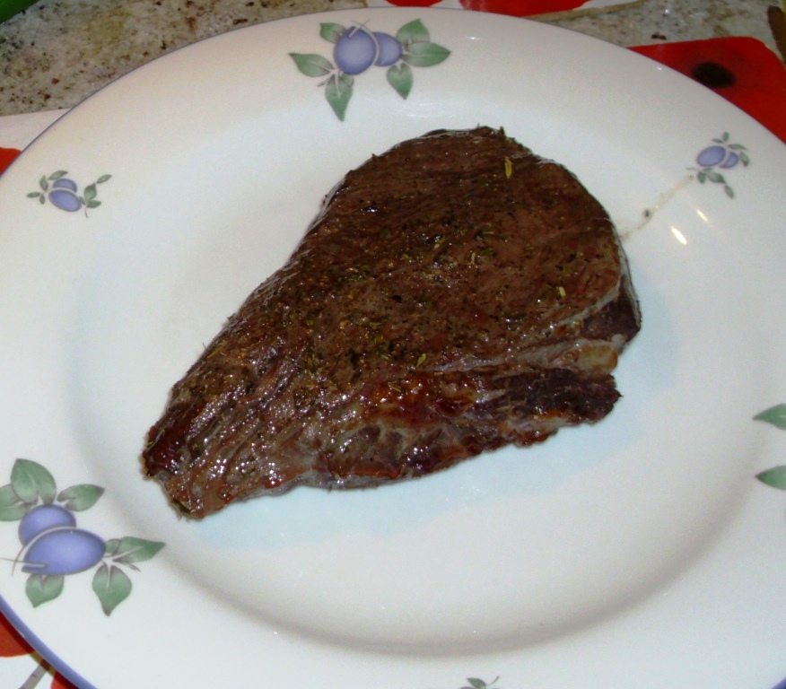 The only disadvantage that I can see is that, unless you have several sous-vide machines, it’s difficult to cater for different degrees of done-ness. I selected a temperature on the medium side of medium-rare to suit my taste for medium-rare and Jean’s preference for medium. In the event, it worked for both of us. I might try one degree less next time.