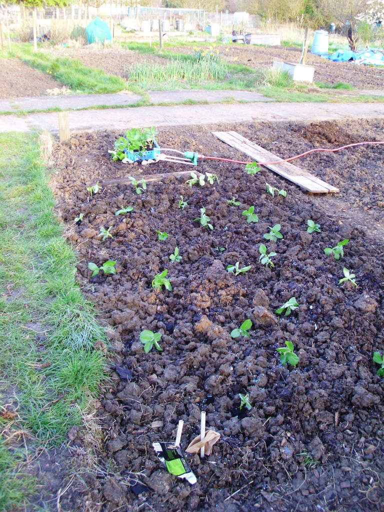 It looks as though the threat of frost has been lifted for the next ten days at least, and the waters of the spring monsoon have receded somewhat. So we’ve made a start on planting out the broad beans, a mixture of a modern variety called Greeny, and some heritage seeds swapped with our friends at Allotments4All.