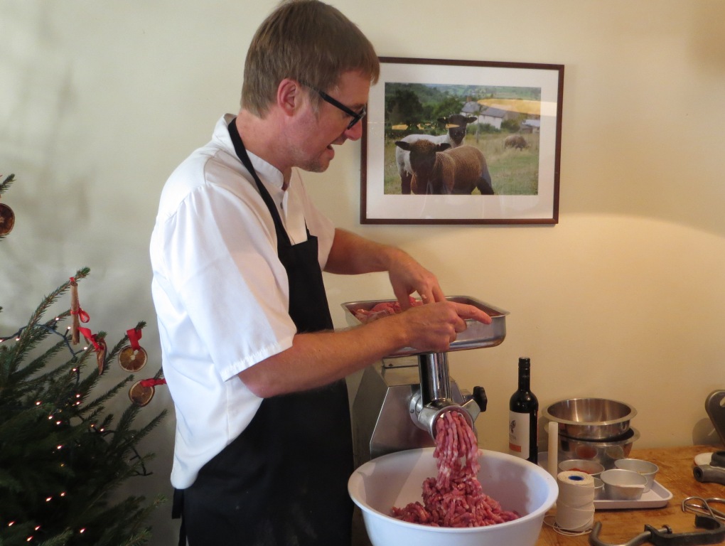 We all had a go at the sausage stuffer, which was a serious bit of kit. Steve told us a price for it that seemed eminently affordable. I began to think that perhaps Santa might leave one in my Christmas stocking. Imagine my disappointment to find that he’d remembered the price of a much smaller model. The one that we were using is eight hundred quid plus VAT. You’d need to be VERY fond of sausages to justify that. Ah, well.