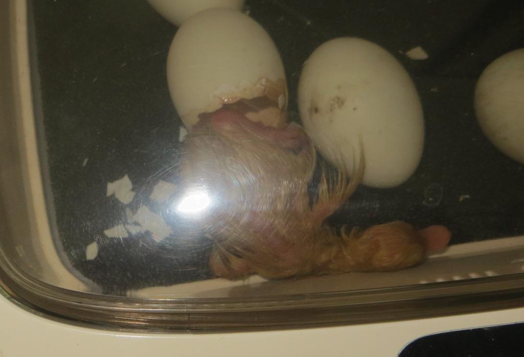 With a full two days to go before the “due date”, the first duckling has emerged. Here is the hatch in pictures. Apologies for the reflection of the flash, but I didn’t want to keep lifting the lid and disturbing the temperature and humidity.