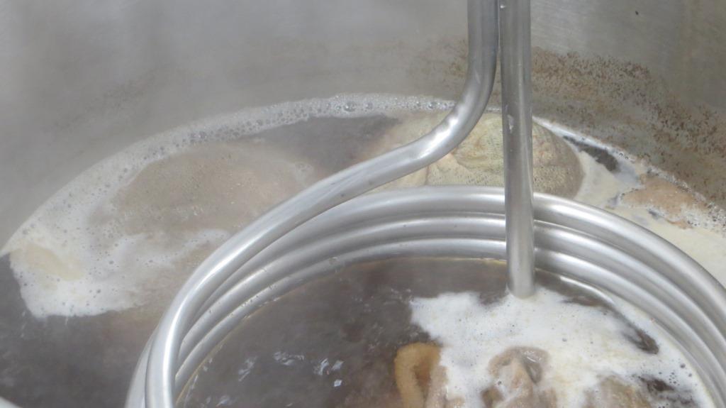 The other way is to use a counterflow chiller, which chills the wort as it runs out from the boiler into the fermentation vessel. The flow is relatively slow, so the difference in time between the two methods isn’t that great.
