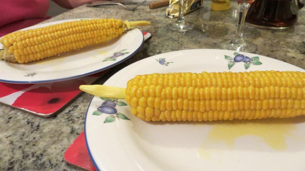 This year, one of the crops that has given us a great harvest is sweetcorn. Here’s last night’s supper, picked just a couple of hours before: