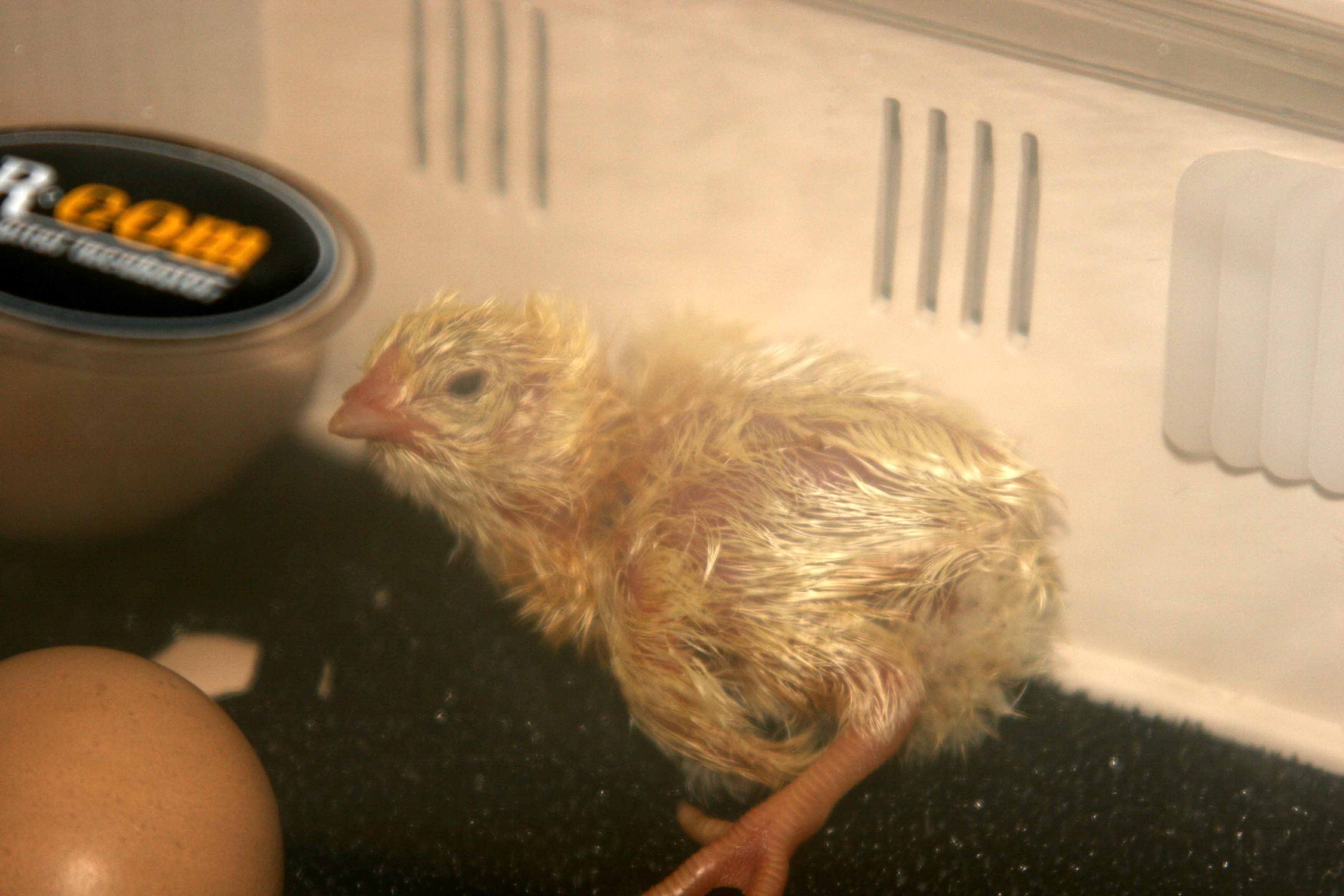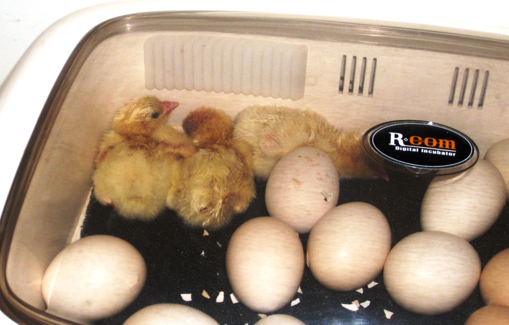 We’re hatching a clutch of duck eggs for a friend at the allotments. When we last checked, 8 out of the original 11 were still viable. The first surprise came yesterday afternoon, when the three-day hatching phase commenced. A couple of eggs had already started to pip, 48 hours earlier than we would have expected. You can see the first little chips in the shells as the ducklings start to hatch.