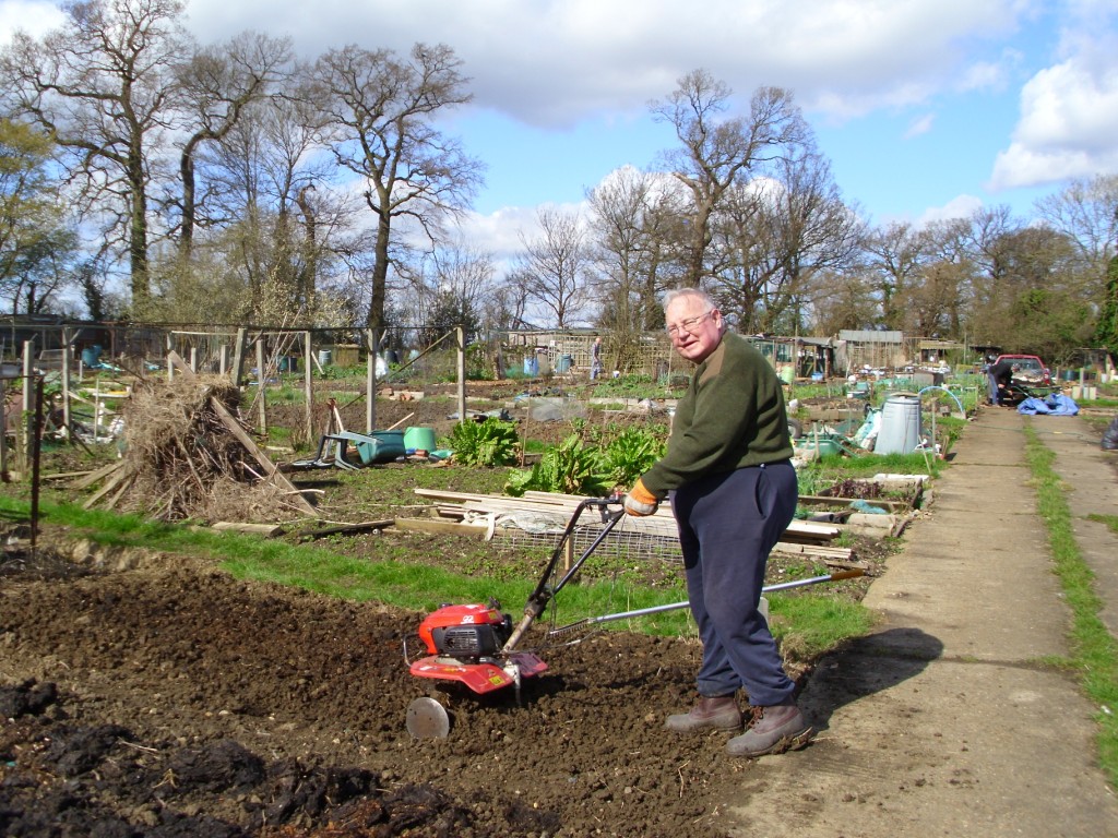 After our brief absence on our Suffolk jaunt, Saturday’s weather remained kind to allow more tilling and planting. The chickens benefited from the uprooted remains of the purple sprouting broccoli:
