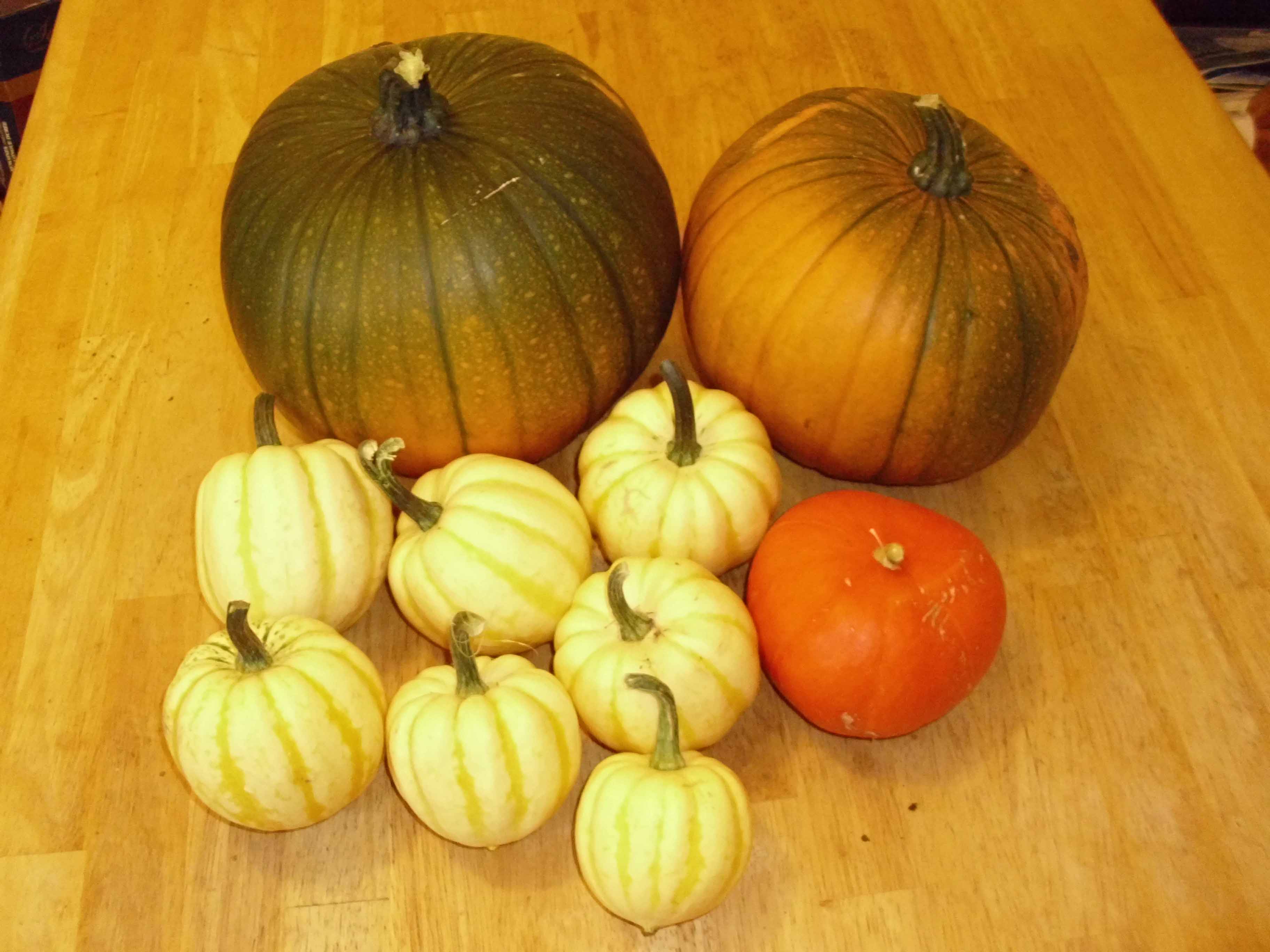 Next to the chicken run Jean planted a bed of courgettes, squash, and pumpkins. The courgettes did moderately well, but in any case you rapidly tire of even a modest harvest of courgettes. The Festival squash did brilliantly, and we’ve discovered that roast squash is a delight.